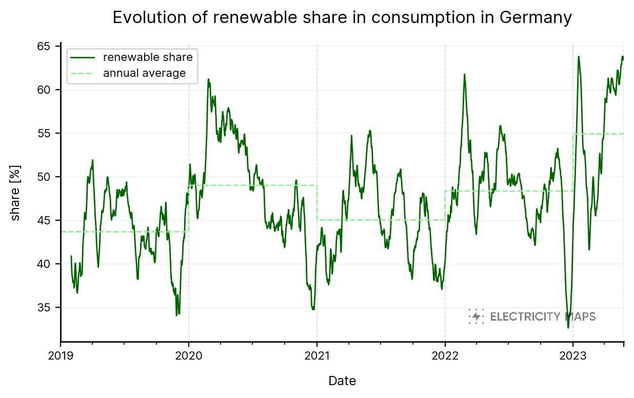 As of 2020, renewables accounted for over 50% of Germany's electricity consumption, with wind and solar power contributing the most. The government aims to achieve a target of at least 65% renewable energy by 2030 and a carbon-neutral economy by 2050.